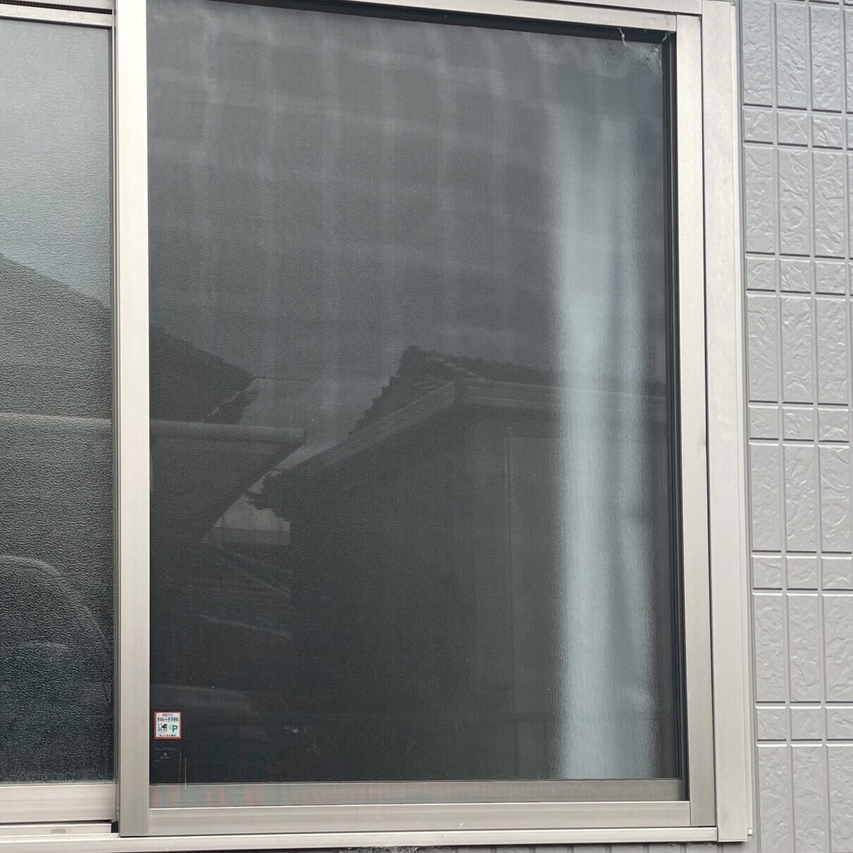 飛び石による掃き出し窓の破損